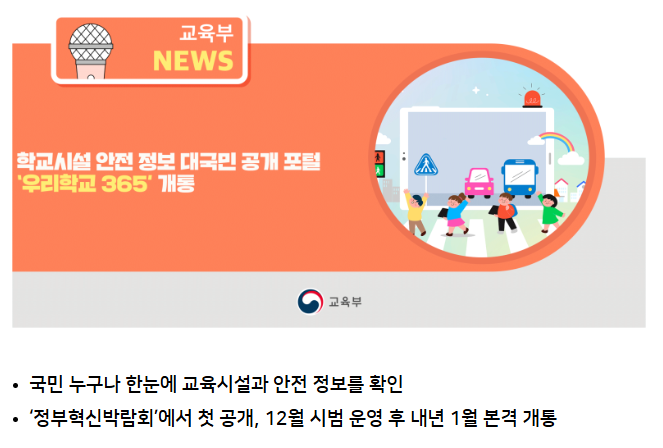 [출처] 학교시설 안전 정보 대국민 공개 포털‘우리학교 365’ 개통|작성자 교육부